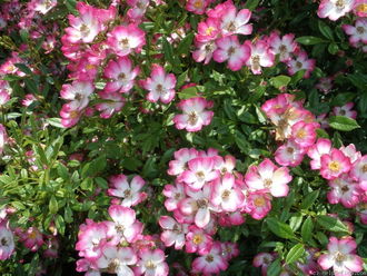 У этого сорта простые цветки, тем не менее, он очень популярен. Это объясняется огромным их количеством: Ballerina цветет непрерывно до первых морозов, а кисти цветков становятся больше и больше со временем. Отдельные цветки, раскрывшись, темно-розовые, быстро выгорают, и демонстрируют белый глазок в центре, увеличивающийся в размерах, до тех пор, пока не останется лишь тонкая розовая окантовка по краям. Тычинки вначале очень красивые, но они тоже быстро выгорают и становятся коричневыми. Сорт очень вынослив и устойчив к заболеваниям, с ярко-зеленой листвой и небольшим количеством крупных шипов. Лучше всего позволить сорту вырасти до естественных размеров и формы, не подвергая обрезке, тогда куст будет округлым и шаровидным, хотя можно выращивать его и как невысокий клаймбер рядом с южной стеной. Особенно хорошо смотрится в качестве бордюрного растения, и при посадке в живой изгороди. Очень легок в выращивании. В жарком климате хорошо растет в полутени, где меньше выгорает.