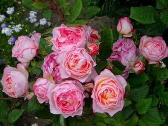 Розовые цветки с белой изнанкой лепестков. Высота куста около 100 см. Аромат насыщенный. Цветение обильное, как у флорибунды. Цветки округлые, густомахровые, часто квартированные. Матовая темно-зеленая листва подчеркивает окраску цветков.