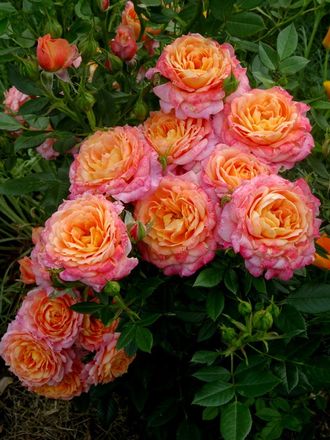 Цветки диаметром 7-8 см, махровые, красивой шаровидной формы, яркие, жёлто-оранжевые, постоянно меняют оттенки, собраны в соцветия по 3-5, при отцветании мумифицируются. Цветение обильное, непрерывное, в течение сезона. Листья красивой формы, удлинённые, с мелкими зубчиками по краям, устойчивые к болезням.