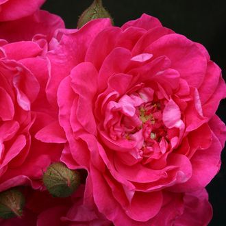 Бутоны от округлых до шаровидных. Цветки старинной формы, диаметром 6-9 см, густомахровые (29-74 лепестка), тёмно-розовые со светло-розовой оборотной стороной, в эффектных соцветиях по 5-9 и более цветков. Аромат лёгкий, яблочный. Цветение обильное, почти непрерывное в течение сезона. Кусты очень выносливые, пряморослые, слегка раскидистые, высотой 120-150 см. Листва зелёная, глянцевая, высокоустойчивая к болезням.