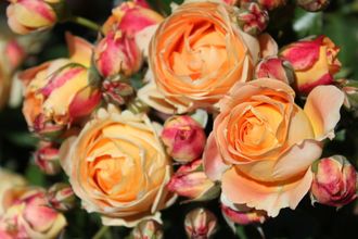 Энергичная, быстрорастущая некрупная флорибунда. Цветение непрерывное, обильное с начала мая до заморозков. Цветы абрикосово-желтые или оранжевые, красиво смотрятся на фоне темно-зеленой листвы. Сорт идеален для бордюров и малых массивов.