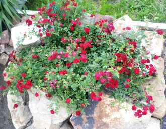 Почвопокровные розы хороши в одиночных и групповых посадках. Они красиво смотрятся на клумбах, в миксбордерах, в сочетании с шалфеями, нивяником, наперстянками и др. многолетниками. Они роскошны на террасах многоуровневого участка. Великолепен из них цветущий бордюр, разграничивающий зоны сада. В рокариях гармоничны невысокие почвопокровные розы с мелкими цветками.
