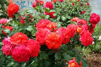 Флорибунда с цветками ностальгической формы, яркий цвет и первоклассная устойчивость к заболеваниям делают ее естественным выбором как для клумб, так и для одиночной посадки. Цветки сияюще-оранжевые с желтым реверсом, густомахровые, в кистях. Листва темно-зеленая, оченьблестящая. Куст очень сильнорослый, ветвистый, до 70 см.