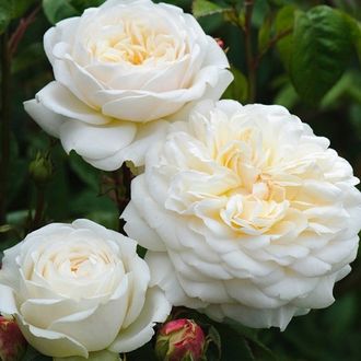 | Цветы имеют изящную округлую форму с аккуратно уложенными лепестками, образующими идеальную розетку. Бутоны слегка желтоватые, но по мере роспуска цветка лепестки становятся чисто-белыми. Присутствует легкий яблочный аромат. Куст крепкий, в основном с вертикальным характером роста, наверху ветви слегка изгибаются. Так мы получаем идеальный садовый шраб, который, если надо, будет прекрасно смотреться и на клумбе. Растение мощное и здоровое. Листва светло-зеленая, типичная для мускусных роз. Растение практически лишено шипов. |