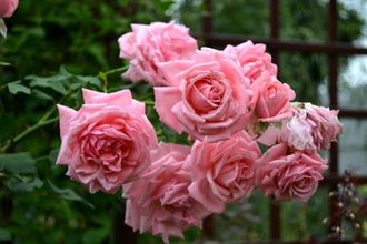 Название несколько обескураживающее – Coral Dawn совсем не коралловой окраски, а красивого насыщенного розового цвета. Листва темная, блестящая, устойчивая к заболеваниям, как у New Dawn, но цветки более махровые, а куст более густой и ветвистый. Цветки имеют шаровидную форму, с множеством коротких лепестков, душистые. Лучше себя чувствуют в сухую погоду, т.к. лепестки мягкие и легко повреждаются дождем. Появляются по одному или в кистях до 7 шт (обычно по 3), с возрастом выгорают до бледно-розовых. На ярком солнечном свете могут некрасиво выцветать. Куст очень колючий. Хорошая роза для невысокой опоры, непрерывно цветущая до первых морозов