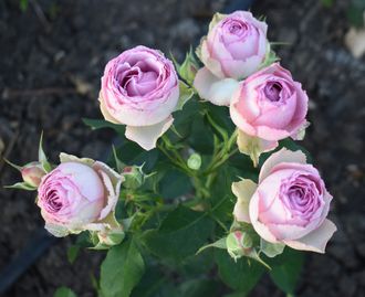 Цветки лиловато-розовые (лавандовые), с красивой раскладкой лепестков, средние (3—4 см), махровые (50 лепестков), с легким ароматом, одиночные и в небольших соцветиях (по 3—5). Листья светло-зеленые, блестящие, мелкие. Кусты 25-30 см высотой, компактные, густые. Цветение обильное. Высокая устойчивость к болезням. Зимостойкий сорт. Прекрасно так же смотрится в группах, в альпийских горках