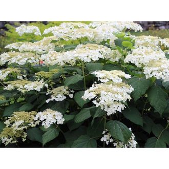 Серединка соцветия гортензии «Вастеривал» от обилия мелких своеобразных цветочков кажется пушистой, а стерильные цветочки на длинных цветоножках напоминают искорки салюта. В целом соцветие похоже на увеличенное калиновое, а калина мне очень симпатична. Аромат цветков имеет медовые нотки. И я всегда наблюдаю на соцветиях множество насекомых. Листва и габитус этой гортензии идентичны старому сорту гортензии «Анабель».